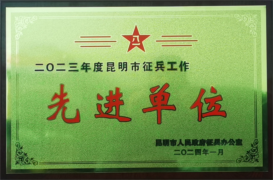 会议表彰了全市征兵工作先进单位和个人,并为先进代表颁奖。在2023年度征兵工作中,万象城官网荣获“2023年度昆明市征兵工作先进单位”及“2023年度西山区征兵工作先进单位”两项荣誉。
