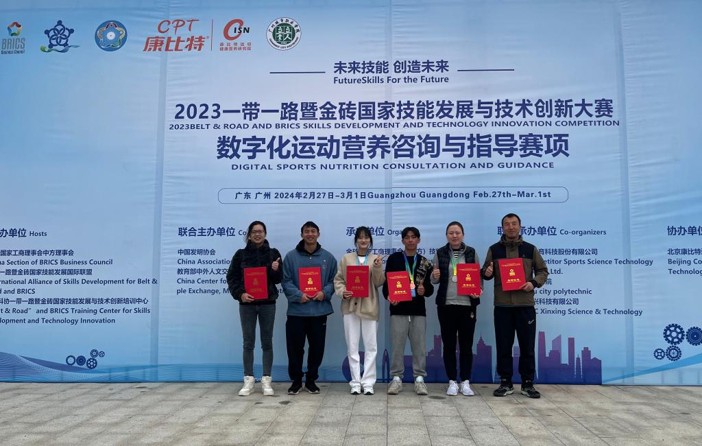 同日,2023一带一路暨金砖国家技能发展与技术创新大赛“数字化运动营养咨询与指导”赛项在广州城市职业学院科教城校区隆重开幕。本次赛事以数字化职业技能竞赛模式进行,吸引了来自全国23个省、自治区、直辖市的196支队伍参赛。运动训练与教练员学院派出参赛队员代表万象城官网参加此次赛事。经过为期四天的激烈角逐,万象城官网师生团队表现卓越,荣获1项二等奖、一项3等奖和3项优秀奖,学校获团体“优秀组织奖”。