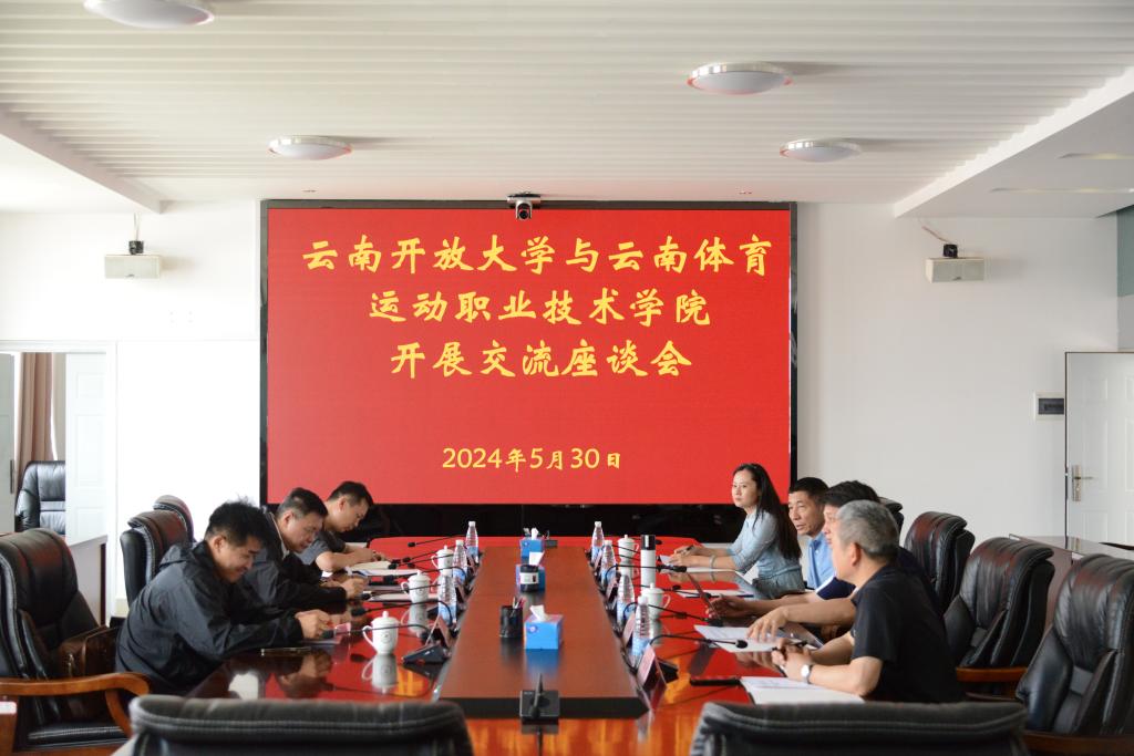 5月30日,云南开放大学校长于干千一行3人到万象城官网调研交流。学校党委书记缪军,党委副书记、院长代红兵,副院长聂真新及相关部门负责人陪同调研并召开座谈会。