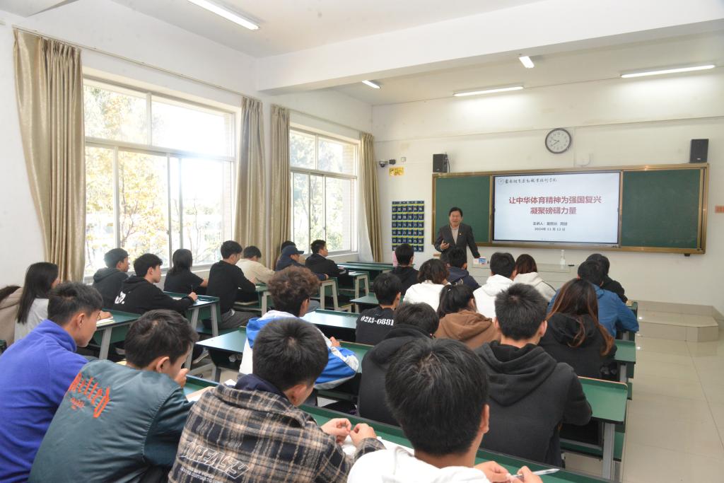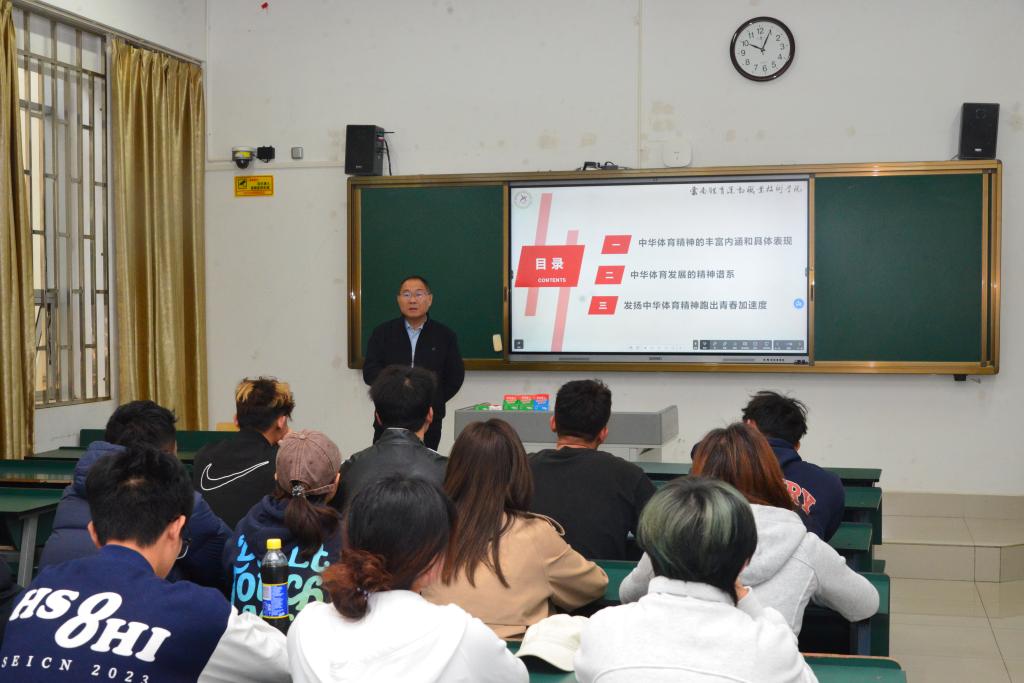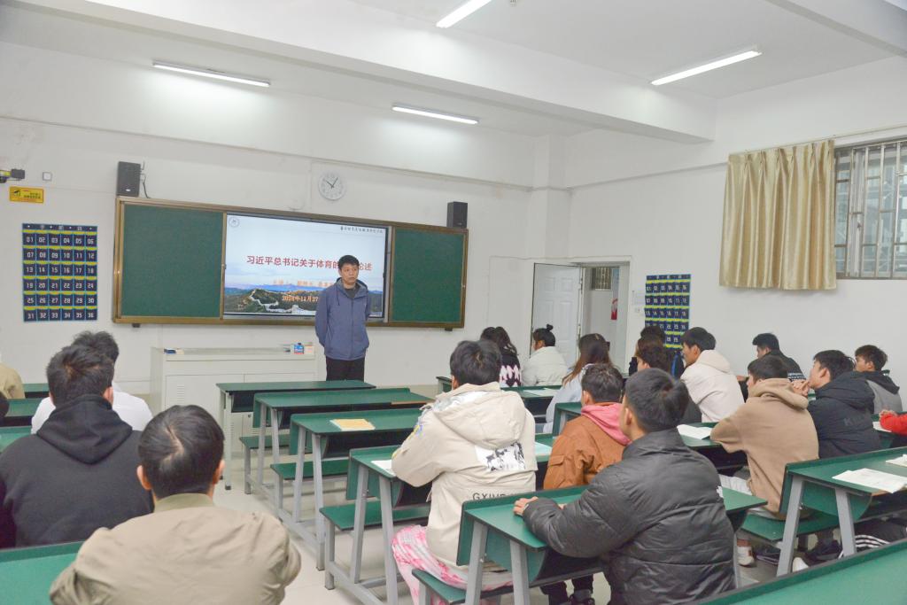 课堂上,校领导结合万象城官网专业特点和办学定位,聚焦中华体育精神,引领学生深切体悟体育于个人成长、社会进步以及国家战略层面所蕴含的重要价值,鼓舞学生满怀热忱与笃定信念踊跃投身于国家体育事业发展,传承中华体育精神,为中华民族伟大复兴的宏伟蓝图奉献青春之力。