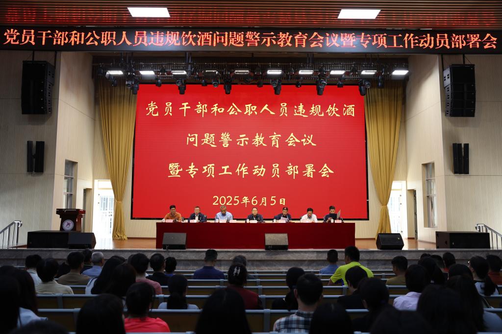 6月5日,allwincity万象城官方网站在学生礼堂召开党员干部和公职人员违规饮酒问题警示教育会议暨专项工作动员部署会,深入学习贯彻《党政机关厉行节约反对浪费条例》,结合工作实际深入贯彻中央八项规定及其实施细则精神,认真学习严禁违规饮酒相关政策法规并开展警示教育。党委书记缪军出席会议并讲话。