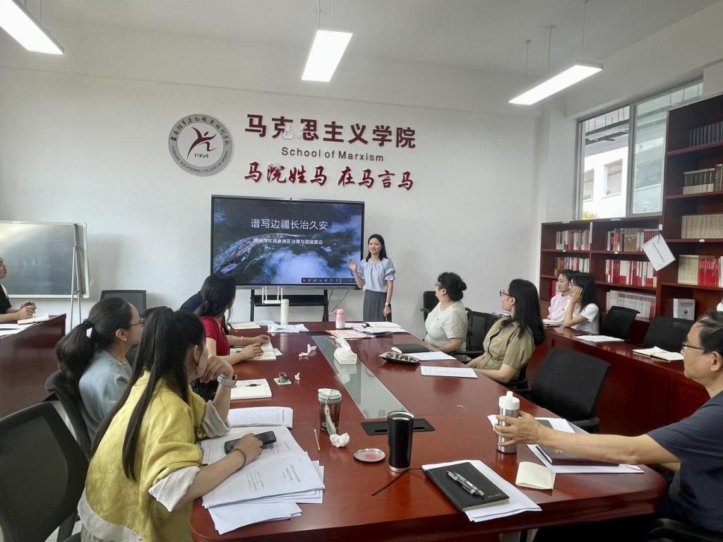 解晓娟老师结合《习近平新时代中国特色社会主义思想概论》课程,围绕“谱写边疆长治久安新篇章:持续深化民族地区治理与团结固边”的主题,梳理了习近平总书记三次考察云南对边疆民族地区治理、维护民族团结、边疆稳固、边疆安全的重要指示精神。在备课交流中,她以独龙江乡的发展为例,生动阐述了云南正以习近平总书记的嘱托为引领,在深化民族地区治理中书写边疆长治久安的新篇章。