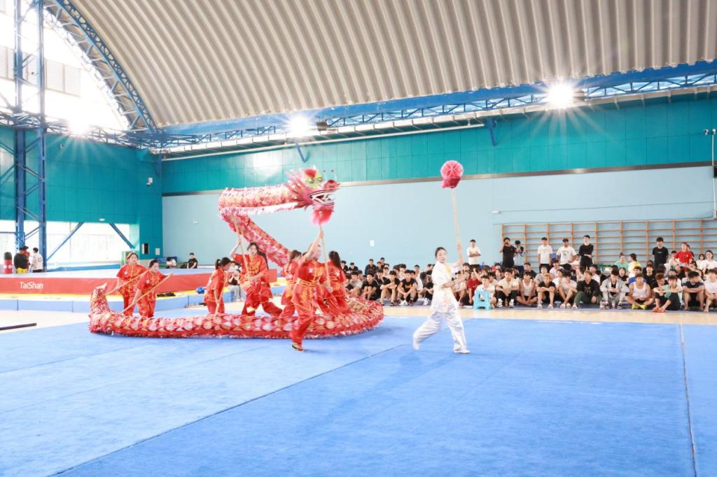 展演中,学校散打专训队、操舞校队、武术专训队及民族传统体育专业学生联袂献艺。气势欢腾的舞龙舞狮、刚柔并济的武术散打、活力绽放的民族健身操、行云流水的武术套路表演,生动展现了中华民族传统体育的多元一体特色,为师生带来一场沉浸式的文化盛宴。