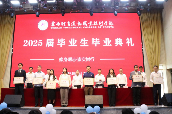 纪委书记金吉斌先后宣读了2025届毕业生体质健康优良等级证书名单、《中共云南省委教育工委 云南省教育厅关于公布2024—2025学年省级五好学生 优秀学生干部 先进班集体及2025届省级优秀毕业生名单的通知》,对在体质健康和综合素质方面表现优异的学生及集体进行了表彰。