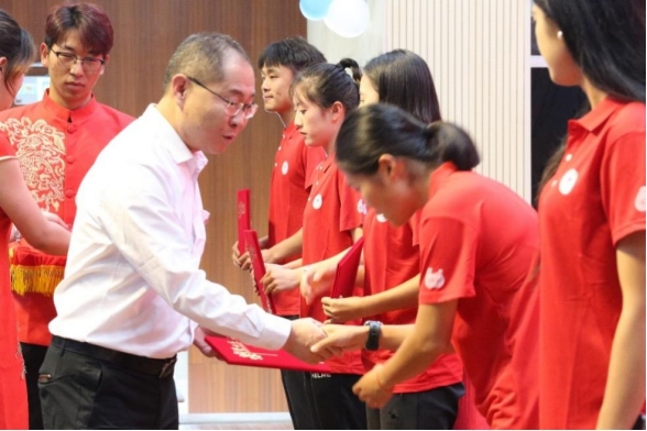 学校领导班子成员依次为获奖学生代表颁发表彰证书。一本本证书不仅是对学生们努力付出的肯定,更是对他们的褒奖,激励着在场的每一位学子。