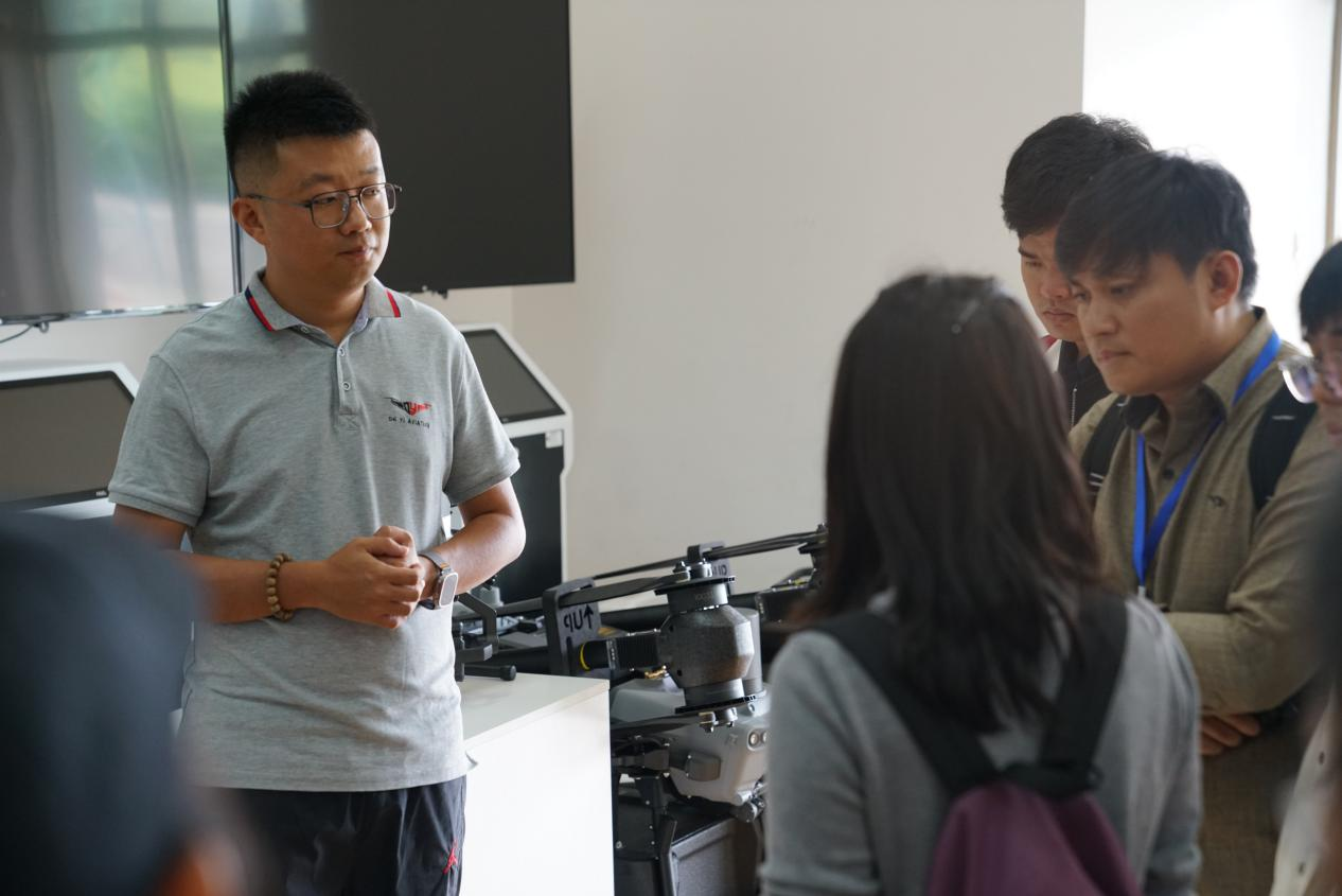 在交流活动中,学员们积极互动、拍照记录,对无人机在公共安全、生态保护、智慧城市等领域的应用表现出浓厚兴趣。
