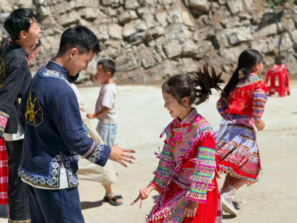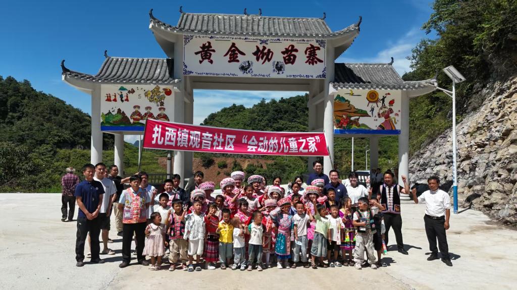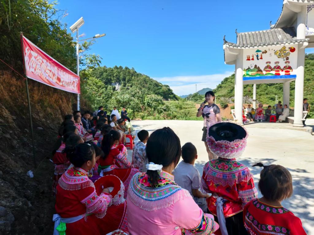 当清晨的第一缕阳光爬上观音社区黄金坳苗族村民小组的寨门时,身着精美苗族服饰的小朋友们早已在寨门口翘首以盼,他们化身民族文化传播小使者,唱着独具特色的苗族迎客小调,欢迎即将到来的老师们。