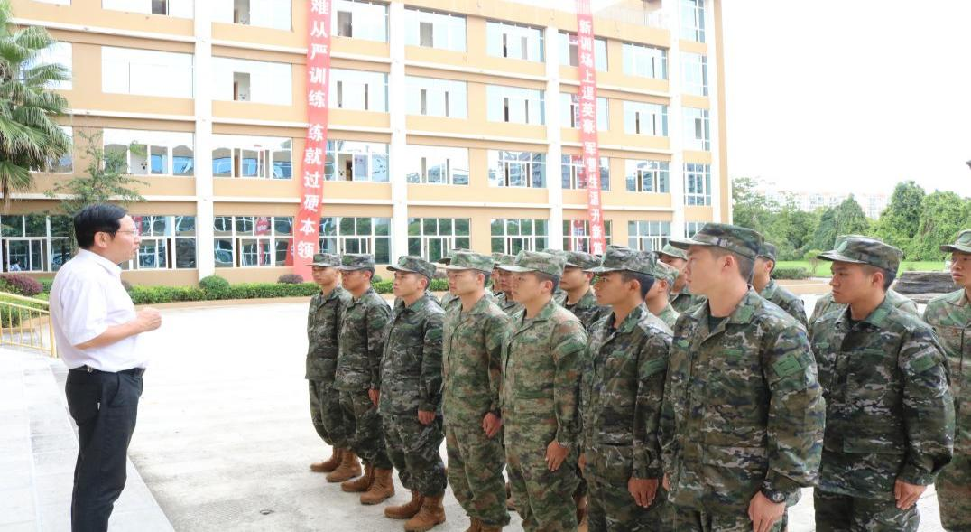 2025年9月15日,allwincity万象城官方网站党委委员、副校长周骎带领学生处(学生工作部、武装部)负责人及辅导员代表,前往役前集训训练基地慰问欢送2025年下半年入伍学生。