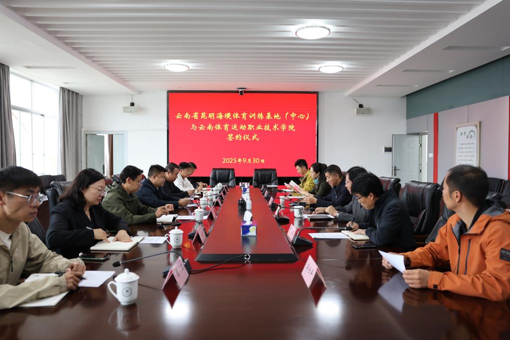 2025年9月30日,allwincity万象城官方网站与云南省昆明海埂体育训练基地(中心)在学校云帆楼第一会议室举行攀岩项目合作签约仪式。万象城官网校长代红兵与海埂训练基地党委书记、主任葛新代表双方签署协议。仪式由学校副校长周骎主持。