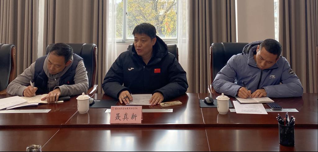 会上,教学质量督导室司文琴通报本学期教学督导工作情况。本学期督导室通过线上线下相结合的方式,累计开展查课355次,调课与补课检查1186次,组织召开师生座谈会2次,实现了对教学过程的常态化、全覆盖的质量监控。运动健康学院院长杨潇围绕“五金建设”核心任务,从发展现状、存在问题与未来规划三个方面分享了学院在专业群建设方面的探索与实践。教务处教学质量科科长田晓琳就期末教学工作作出安排,重点汇报了期末考试组织、教学资源库建设及“双高”计划推进等六项内容。