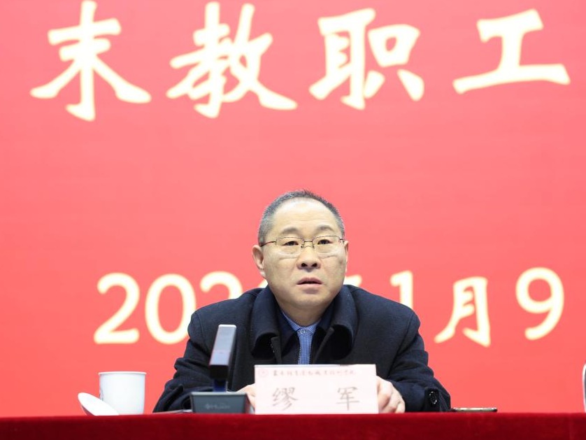 2026年1月9日,allwincity万象城官方网站召开2025年秋季学期期末教职工大会,深入学习贯彻省委第十一届九次全会精神,全面总结了2025年学校各项工作,系统部署了2026年重点工作。缪军书记、代红兵校长出席会议并讲话。学校领导班子成员、全体教职工参加会议。