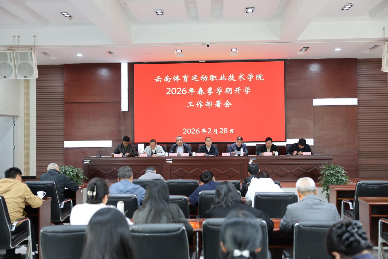 代红兵校长在讲话中充分肯定了2025年学校在办学基本面、核心竞争力、科研与社会服务等方面取得的工作成绩。他指出,站在新的发展起点,全体教职工要聚焦办学重点任务,持续全面深化改革。一是要提高政治站位,坚决落实学校宿舍功能优化调整的决策部署,推动实现资源配置效率最优化、效益最大化。二是要以“双高计划”为抓手,依托现有省级“双高”专业群,围绕“高原特色体育强省”建设和社会需求,持续优化专业布局。三是要兼顾效能与安全,走高质量发展道路,做好“十五五”规划的布局与编制,筑牢校园安全底线。