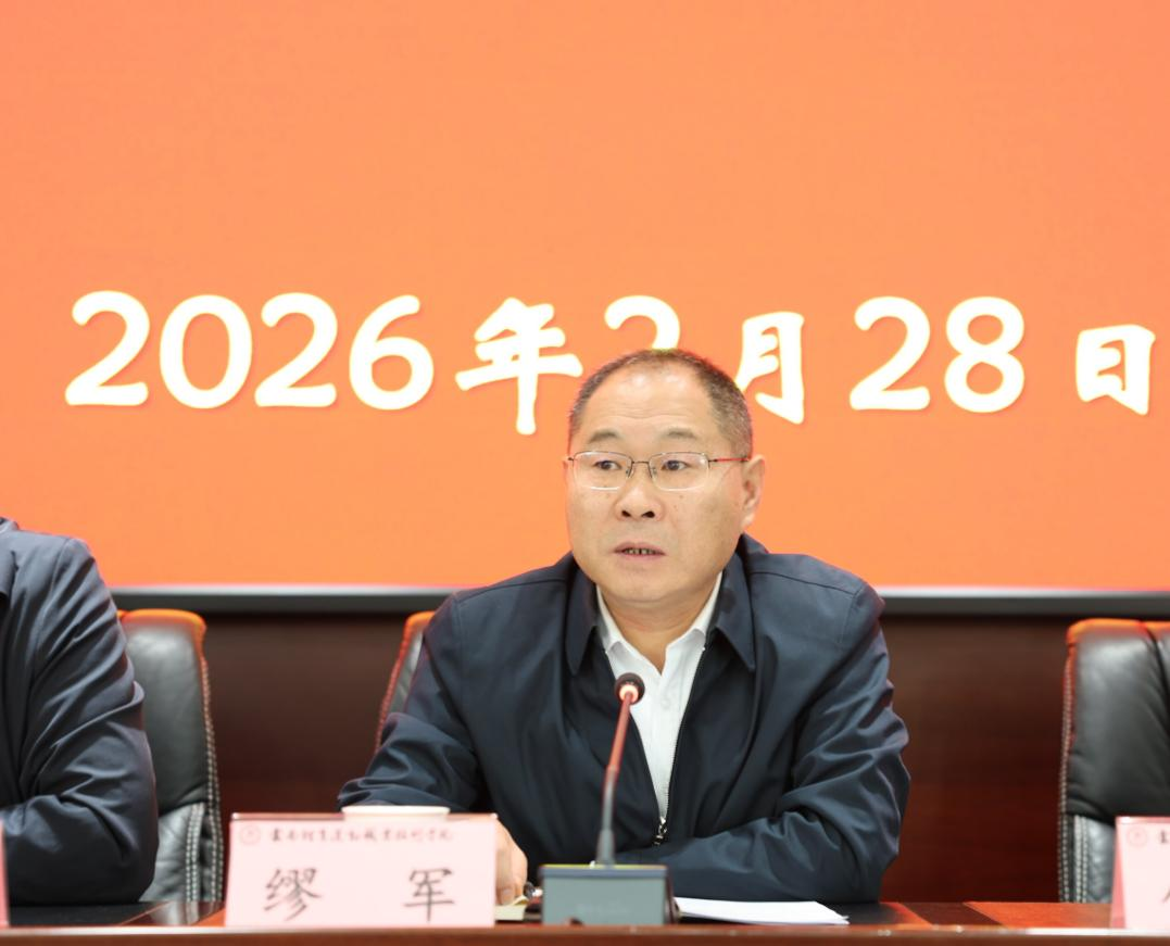 缪军书记作总结讲话。他强调,2026年是启动“十五五”事业发展规划的开局之年,是学校向高水平高职院校冲刺的关键之年,全体干部职工要以“开局即决战、起步即冲刺”的奋斗姿态,做好“三个带头”:一是在学习上带头,持续深入学习习近平新时代中国特色社会主义思想、党的二十大和二十届历次全会精神,学习贯彻职业教育相关文件精神,认真开展树立和践行正确政绩观学习教育,在思想上弄清“政绩为谁而树”,在目标上厘清“树什么样的政绩”,在方法上践行“靠什么树政绩”,做到深学细悟、心中有数。二是在工作上带头,明确办学目标方向,锚定争创一流要求,全体党员干部要率先垂范,压紧压实责任,以精益求精的态度、担当实干的作风,用更高标准、更严要求完成工作任务,带头推动全校形成共同抓落实、干实事的良好局面。三是在遵纪上带头,严格遵守各项政策法规和纪律要求,强化对党员干部的日常监督管理,抓早抓小、防微杜渐,始终做到利剑高悬、震慑常在,持续改进工作作风,永葆清正廉洁的政治本色,推动全面从严治党向纵深发展。