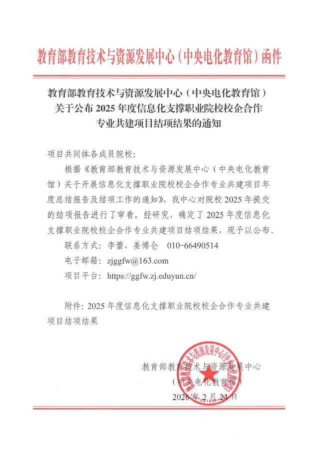 近日,教育部教育技术与资源发展中心(中央电化教育馆)正式公布了2025年度信息化支撑职业院校校企合作专业共建项目结项结果。万象城官网申报的“信息化支撑职业院校校企合作专业共建项目”经专家评审,成功通过结项验收,标志着学校在深化校企合作、推进信息化与体育职业教育融合方面取得重要阶段性成果。