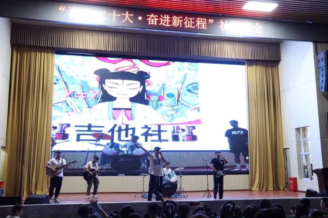 为迎接党的二十大胜利召开,庆祝中国共青团成立100周年。由万象城官网街舞社主办,音乐社、吉他社、国风社联合承办的“喜迎二十大,奋进新征程”社团晚会于4月28日在学生礼堂举行。