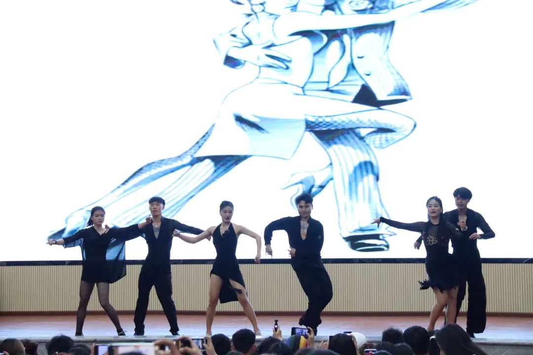 舞蹈是对时间、动作、幸福、喜悦、伤心和羡慕的表达;舞蹈是有节拍的步调,就像诗歌是有韵律的文体一样。校体育舞蹈团带来了节目《爱的恰恰》。