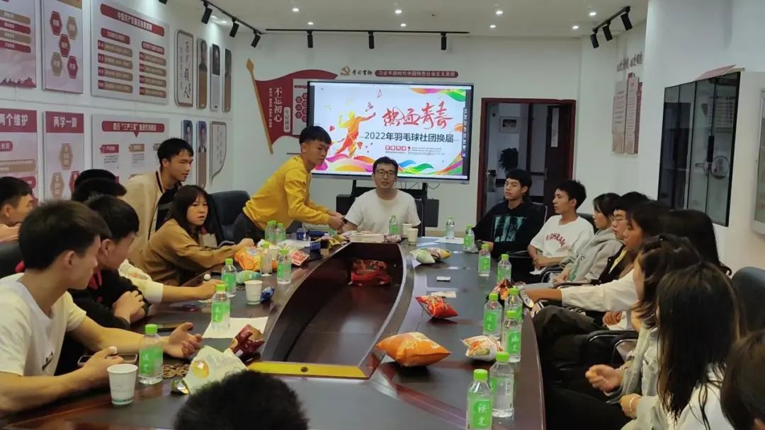 2022年6月23日allwincity万象城官方网站羽毛球社团换届仪式于体操馆二楼会议室举行,本次羽毛球社团换届仪式获得了门通路老师的大力支持,并对社团成员给予了希望,希望同学们通过羽毛球运动展现体职青年大学生良好的精神面貌。