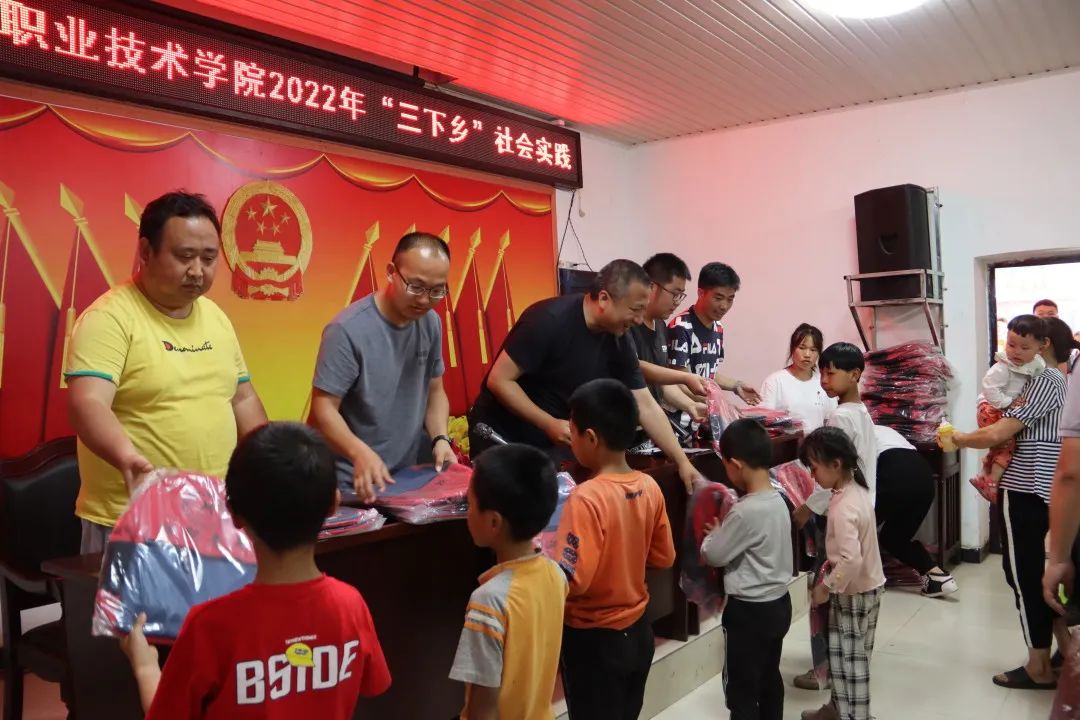 7月7日,allwincity万象城官方网站2022年大学生暑期文化科技卫生“三下乡”社会实践活动在昭通市长安镇安乐村进行捐赠仪式,为安乐村的孩子们捐赠了200个爱心书包。