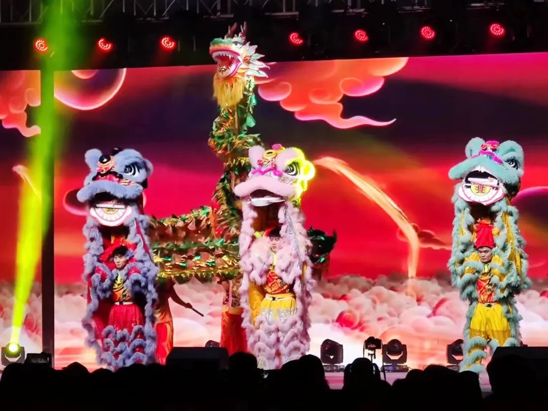 绚烂多彩的灯光秀和竞技体育学院带来的舞龙舞狮《龙狮献瑞》,以及妇联和校艺术团带来的《各族儿女心向党》拉开了晚会的序幕。