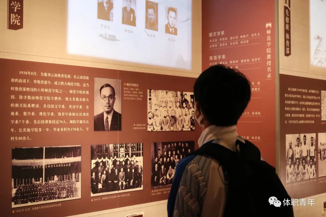紧接着大家来到西南联大博物馆展馆内,更加详细地了解西南联大组建的社会时代背景、教学体制、校徽校训、院系组织机构、艰苦的教学环境、科研成就、杰出校友以及联大师生对云南地方教育文化事业作出的贡献。“救国不忘读书,读书不忘救国”。