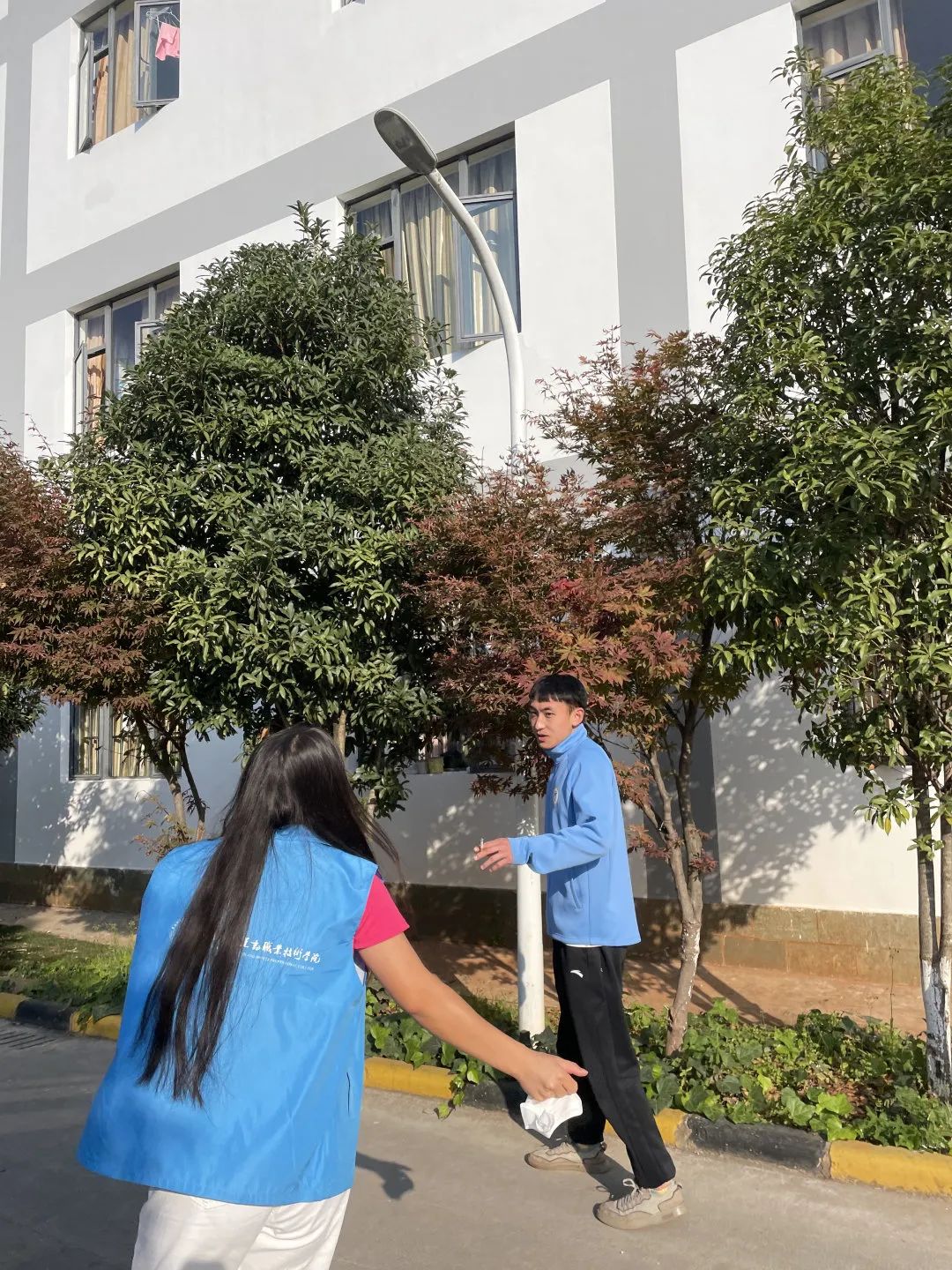 志愿者们遍布在校园的每个角落,一旦发现在校园公共场合抽烟或者随意丢弃烟头等行为,及时上前给予劝阻,并宣讲校园“禁烟控烟”的相关要求。同学们也积极地配合,掐灭了手中的烟并丢入了垃圾桶内。