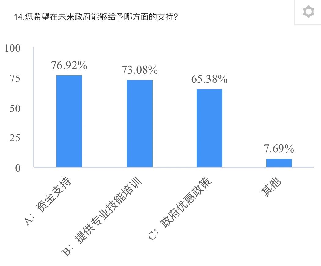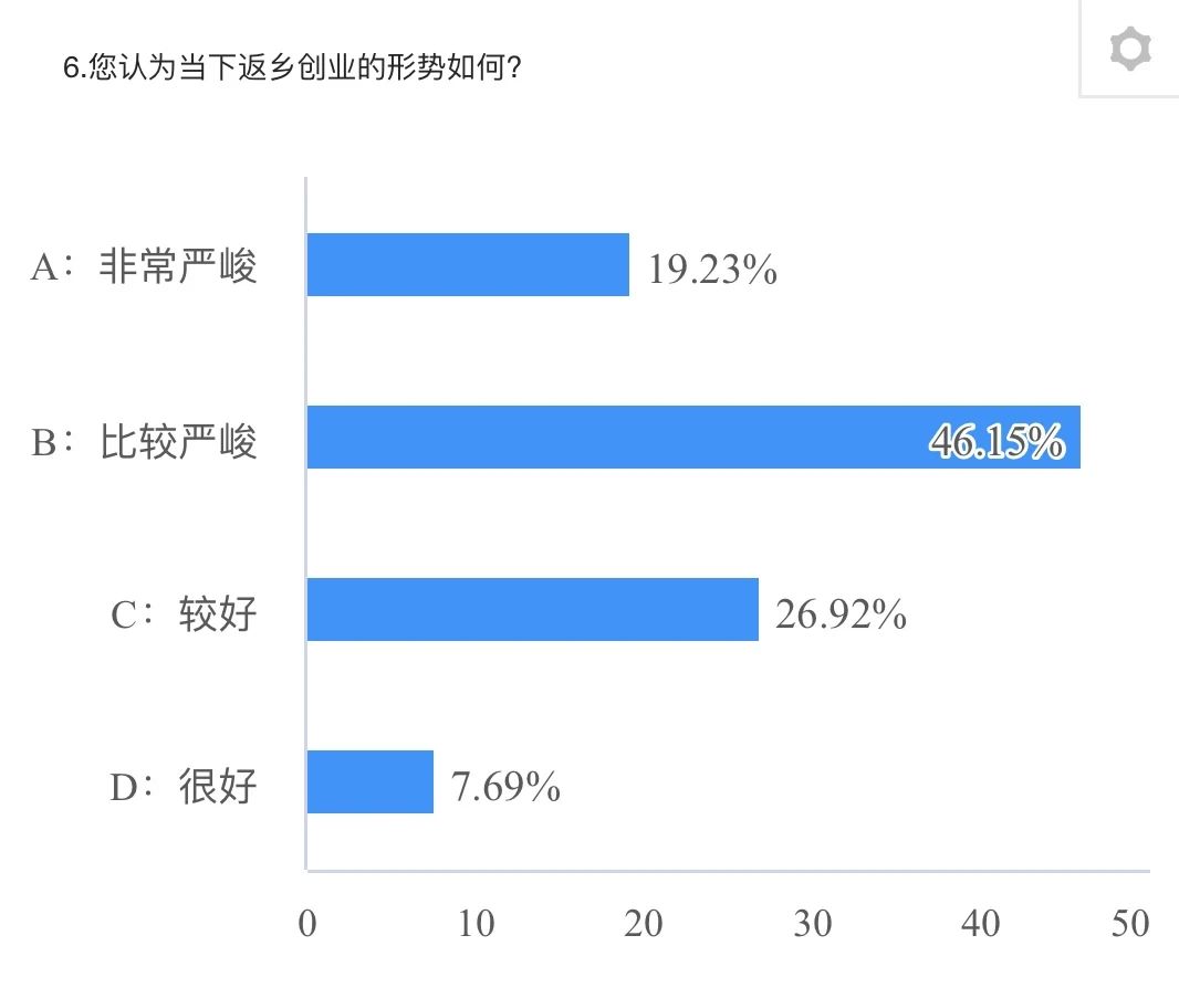 调查数据显示,多数创业者认为返乡创业形势严峻,同等类型企业多,竞争大。后疫情时代,各种不稳定的因素叠加,导致企业难以实现良好经营。部分创业者对当地的创业帮扶政策不了解,认为自己难以承担政策扶持所带来的责任和风险。