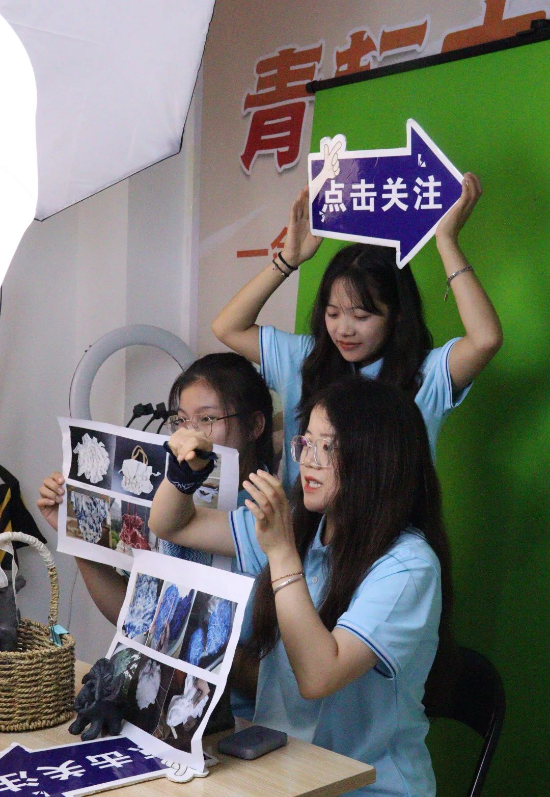 本次直播以“直播传非遗,实践促振兴”为主题进行推广,直播前期各小组仔细查询资料,攥写直播脚本,走访非遗工作室,确保直播万无一失。直播开始,主播仔细讲解每一项非遗文化同时配合着实物的展示,在回答观众问题时,形成了良好的互动,直播间氛围轻松愉悦。