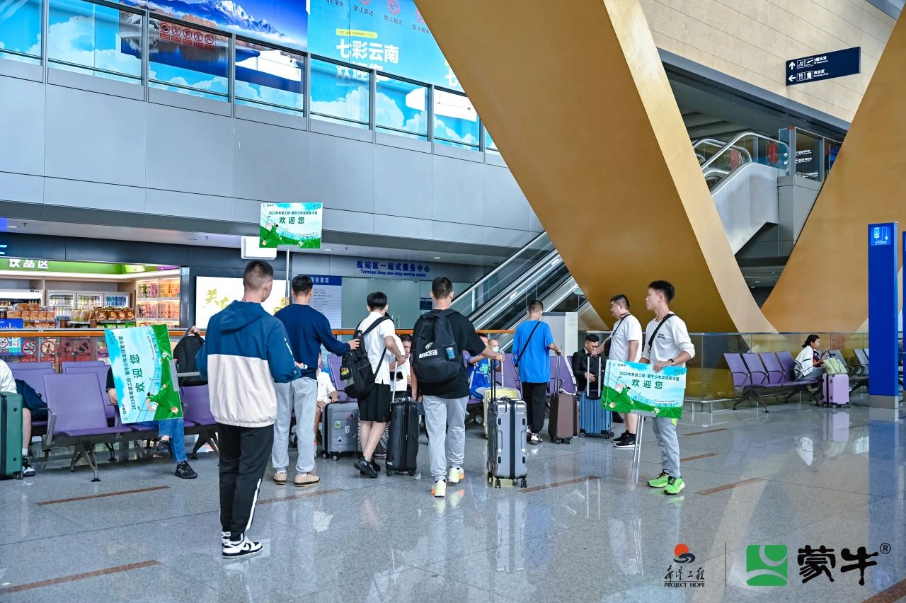 “希望工程·蒙牛少年足球夏令营”昆明营共有来自全国16个省、市、自治区的164名中小学球员参加, 7月11日上午志愿者们便前往长水机场、昆明火车站、昆明南站接待陆续到达的小球员们。