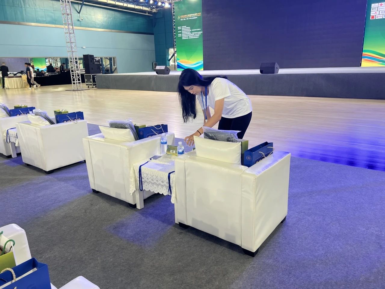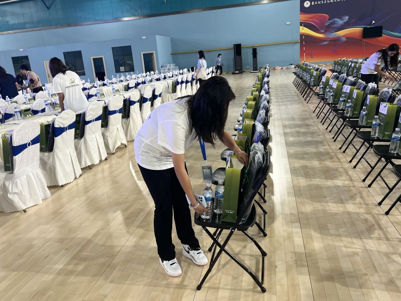 活动前期,志愿者们早早就位,开始在武术馆布置活动现场,保证第二天的开幕式能如期举行。开幕式当天,志愿者们集合整队后便回到了各自的岗位开始工作,为参与本次活动的选手和嘉宾引路。