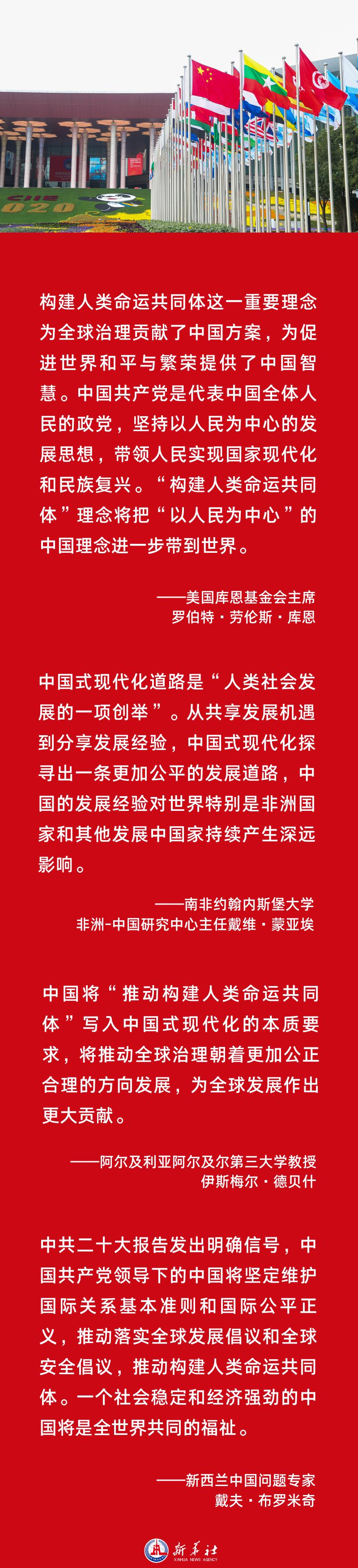 当前,世界又一次站在历史的十字路口,何去何从取决于各国人民的抉择。国际社会认为,在这样的关键时刻,二十大报告将“推动构建人类命运共同体,创造人类文明新形态”写入中国式现代化的本质要求,表明中国在现代化建设的过程中,将始终推动全球治理朝着更加公正合理的方向发展,中国人民将同世界人民携手开创人类更加美好的未来。