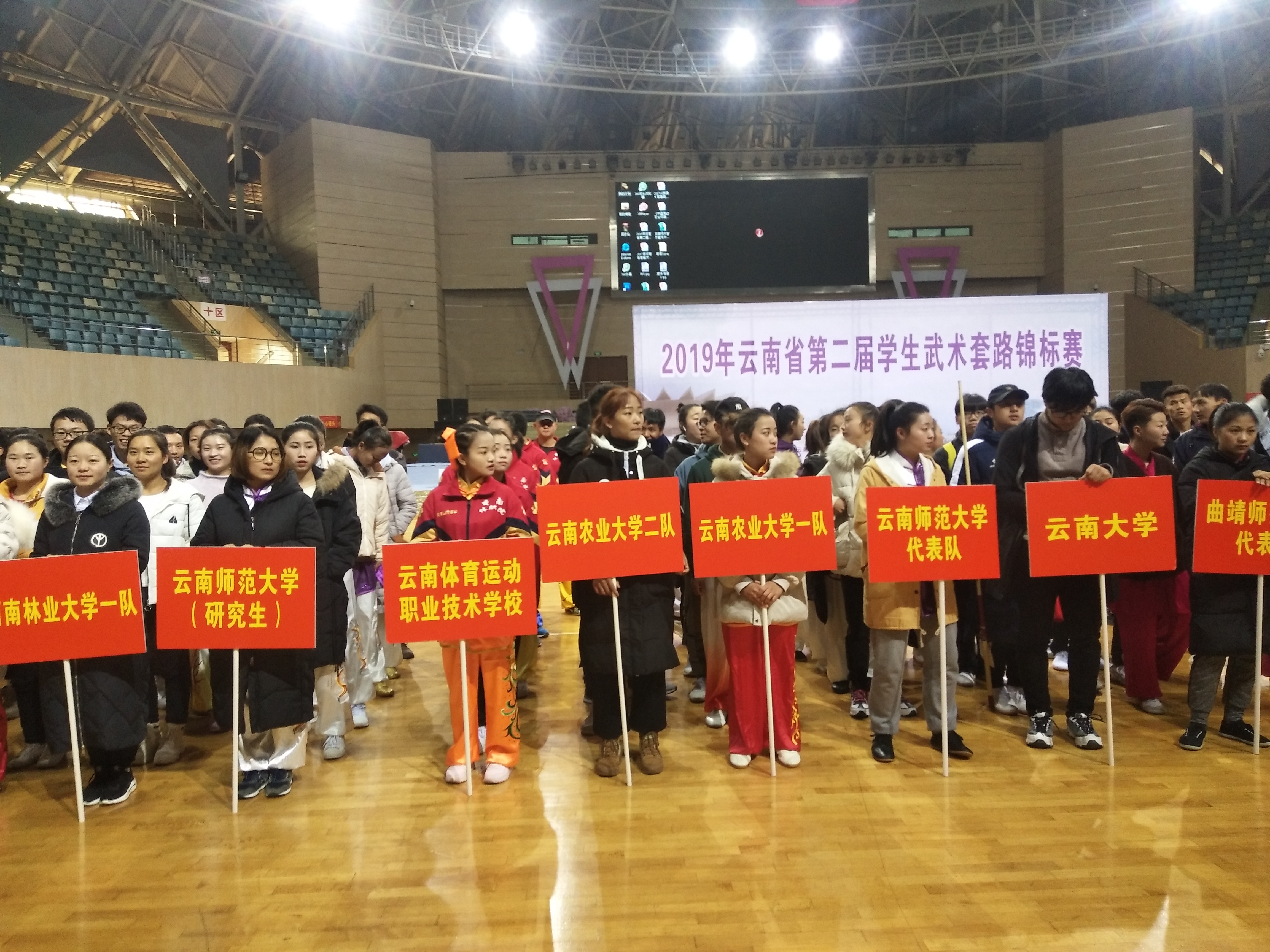 “2019年大学生武术套路锦标赛”,于12月27~29日,在师大体育馆举行。此次比赛共有10所院校,14支队伍,100多名运动员参加。万象城官网由高丽琼教练带队,派出6名男生:陈誉文、左礼伟、吴廷禧、马顺波、刘波、杨世超,6名女生:张娴、邹兴梅、罗翠、赵文、杨雪娇、段丽芬共计12名学生,每人参加3个单项、1个对练、1个集体项目的比赛。
