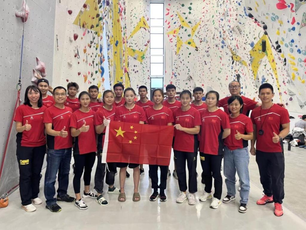 中国攀岩代表团参加2022年攀岩世界杯(瑞士维拉尔站)的合影(左三)