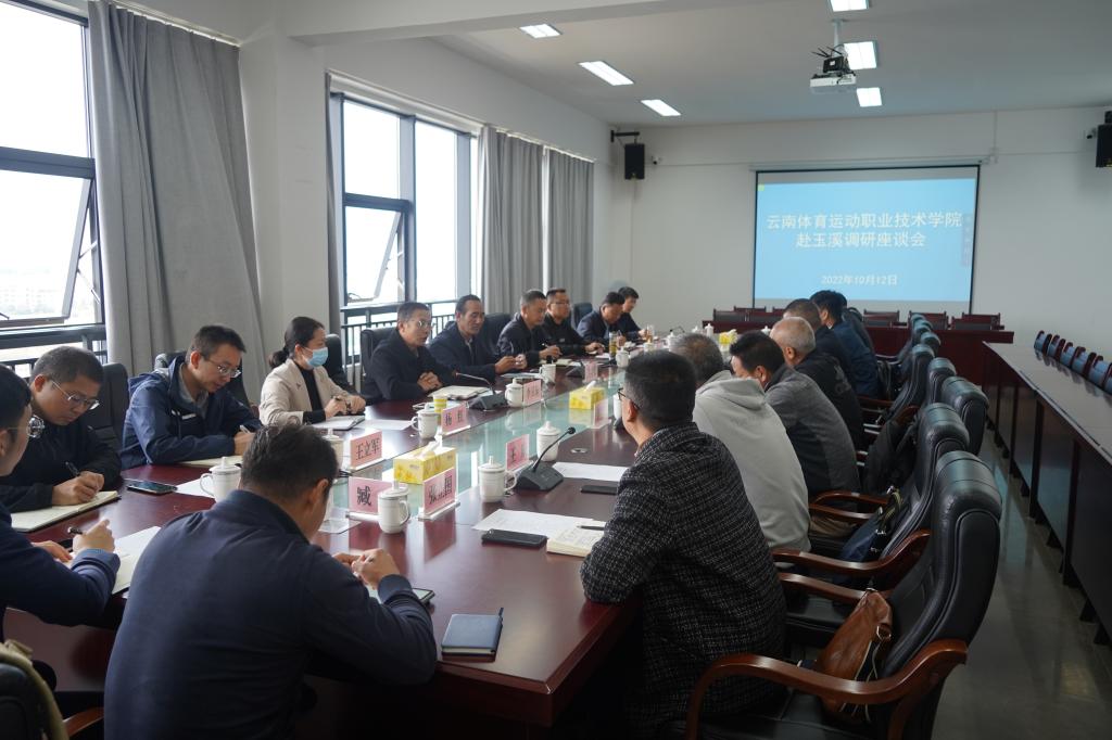 2022年10月12日,学校党委副书记张永和、副院长董从民、副院长聂真新带领学校各部门负责人等一行12人赴玉溪体育运动学校进行考察调研。