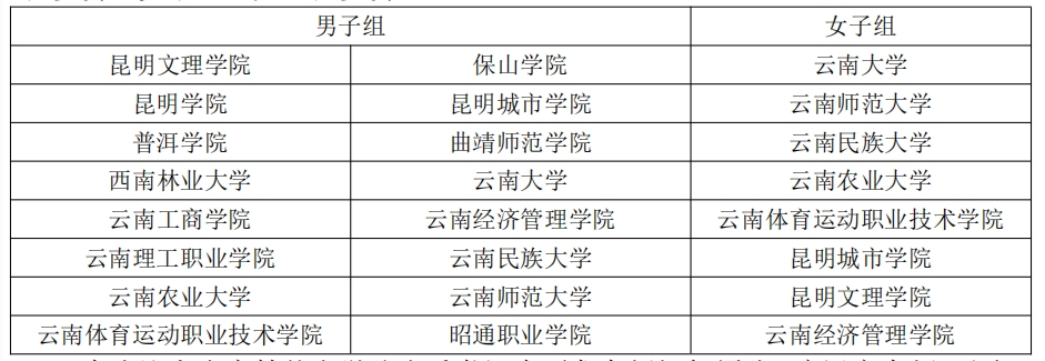 本次比赛由云南省教育厅主办,云南省学生体育协会承办,男子组16支队伍参赛,女子组8支队伍参赛。