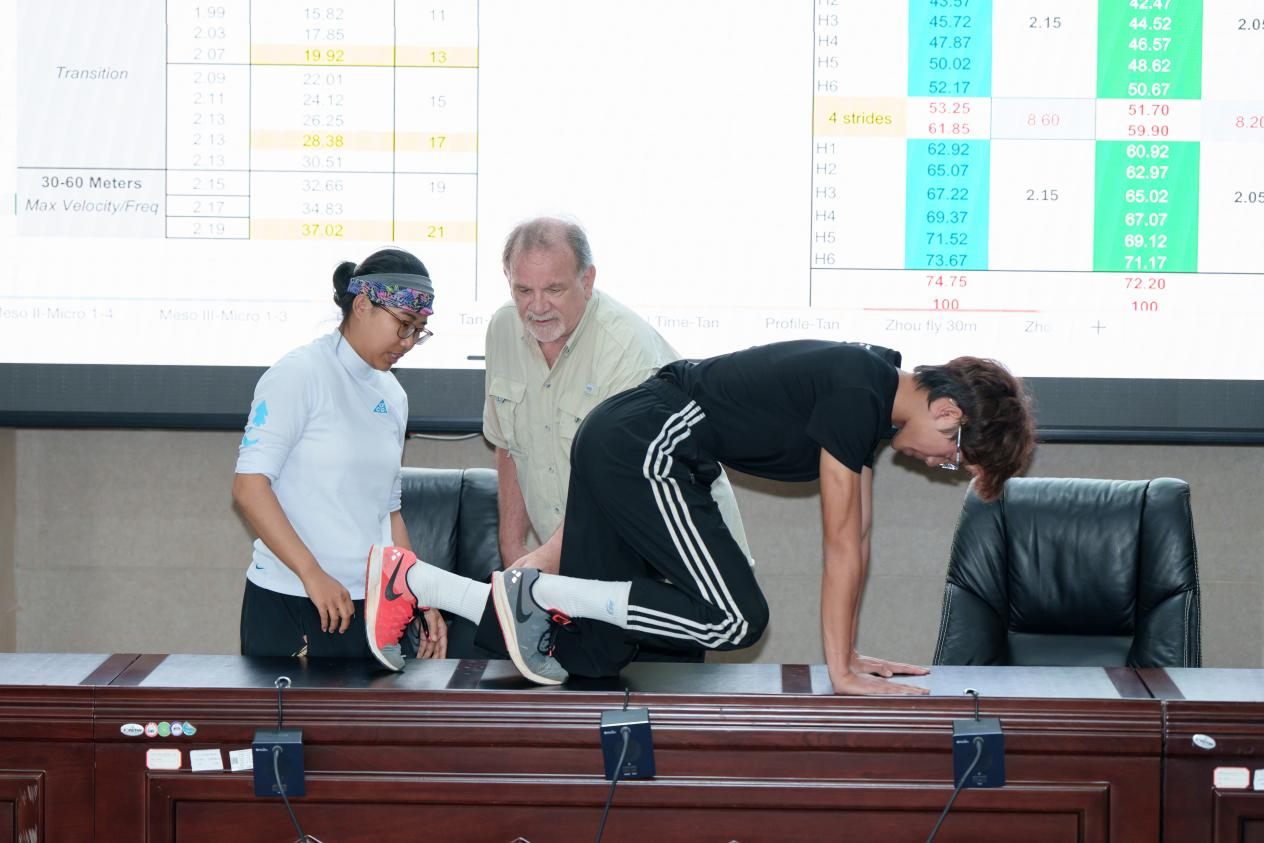 本次活动特邀中国田径队功勋教练(苏炳添外籍主管教练)兰迪·亨廷顿担任主讲嘉宾。在其《短跑技术分解:从起跑到冲刺的科学化训练》主题分享中,兰迪教练通过详实的生物力学数据和丰富的实战案例,深入解析了短跑技术的核心要点,引发了在场教练员的强烈共鸣。