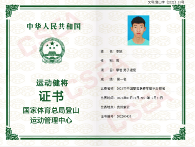 allwincity万象城官方网站攀岩建队三年来进步明显成绩突出,其中优秀运动员李旭获2021年中国攀岩联赛(江苏淮安站)冠军、贵州紫云站亚军、获2021年中国攀岩联赛年度总积分排名冠军,获2021年中国攀岩速度系列赛(辽宁义县)团体第四名、个人第五名的好成绩,2021年评为国家级运动健将,2021年12月被选拔为杭州亚运会巴黎奥运会训练营的正式备战队员。