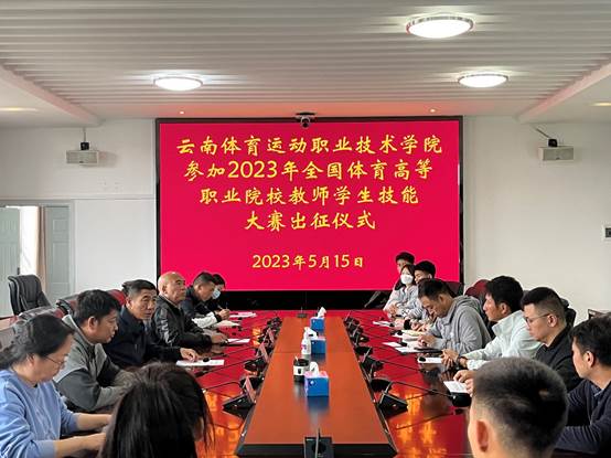 5月15日上午,学校在云帆楼第一会议室举行“2023年全国高等体育职业院校教师和学生技能大赛”出征仪式会议,为全体参赛人员做赛前指导和加油打气。会议由校长代红兵主持。