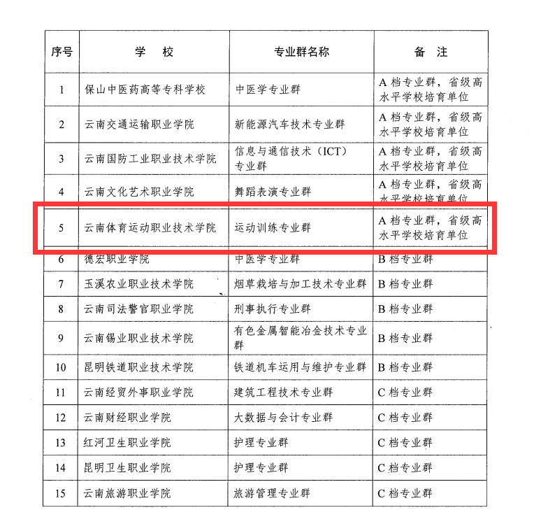 2022年3月10日,云南省教育厅与云南省财政厅发布《关于公布云南省高水平高等职业学校和高水平专业群立项建设名单的通知》,allwincity万象城官方网站运动训练专业群被评为A档专业群,万象城官网为省级高水平学校培育单位。