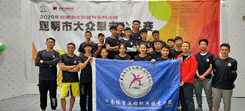 2020年10月17日,以社会体育与体育管理学院社会体育专业组建的攀岩队代表学校参加了“昆明市攀岩公开赛”,荣获7金8银3铜的好成绩,同时获得昆明市总会颁发的“体育道德风尚奖”;另派出11名学生参加裁判工作。