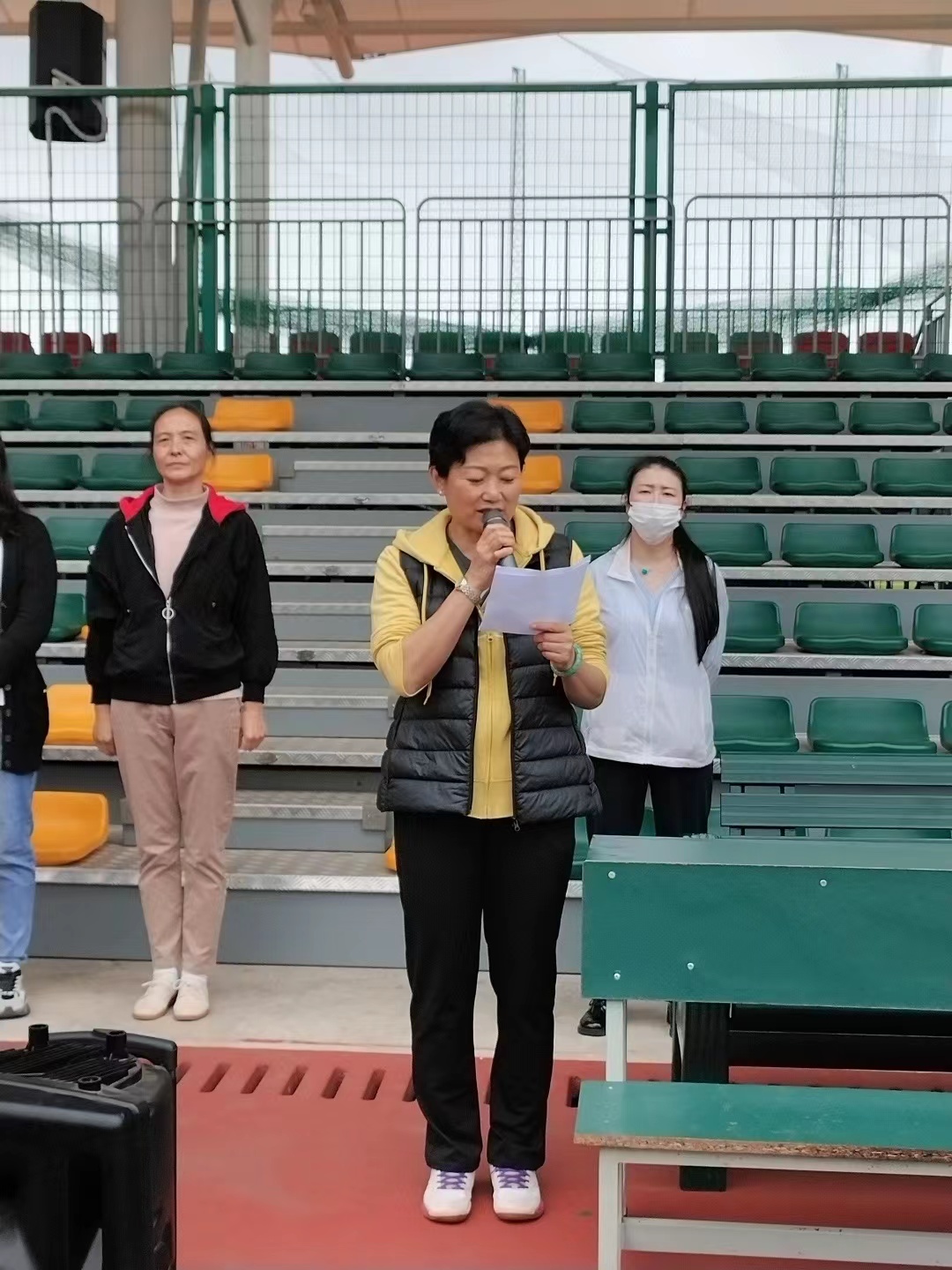 首先,社管学院党总支书记杨雪雯老师致开幕词,她希望全体运动员要发扬“更高、更快、更强”的体育精神,顽强拼搏,奋力争先,以高昂的斗志,高超的球艺,赛出友谊,赛出风格,赛出水平;同时,希望全体裁判员忠于职守,严肃执纪,公正裁判,努力营造公平、有序的良好竞赛环境。