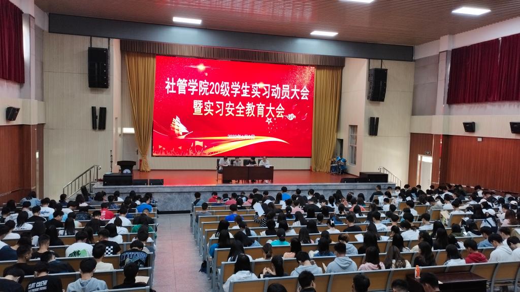 2022年6月8号12:30,为进一步做好学生实习工作,引导学生做好实习前各项准备工作,推进实习工作的顺利开展,社会体育与体育管理学院在学生礼堂召开了20级学生实习动员大会暨实习安全教育大会。社管学院院长司文琴、20级辅导员以及20级五个专业的全体同学参会。