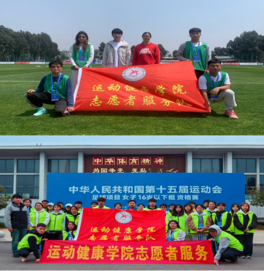 2025年3月28日至4月1日,中华人民共和国第十五届运动会足球项目女子16岁以下组资格赛在昆明海埂训练基地火热开赛。运动健康学院康复治疗技术、体育保健与康复、健身指导与管理、食品营养与健康四个专业学生参与赛事志愿者服务。