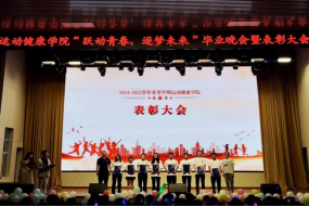 2025年6月19日晚,运动健康学院在学生礼堂举办"跃动青春,逐梦未来"毕业晚会暨表彰大会,为毕业生送上特别礼物。