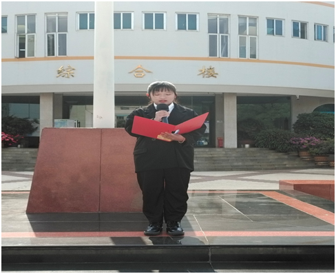 社管学院学生代表李盈盈同学在国旗下发表了名为《小我融入大我,青春献给祖国》的演讲,她回顾了祖国发展的风雨历程,,万千志士在中国共产党的领导下共同砥砺奋进取得的辉煌成就,讴歌了党的伟大,祖国的富强,新时代的昌盛,号召广大青年听党话,跟党走,继往开来,肩负历史责任,成为一个对国家、对人民、对社会有用的人。