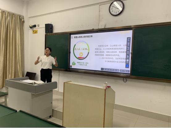 集体备课会上,主讲教师陈晓娇以“社会主义核心价值观彰显人民至上的价值立场”为主题,围绕本学期课本第四章第二节相关内容进行讲课、说课。其他教师对所讲解内容进行评述,并对课程内容的重点怎么突出,难点怎么突破进行了深入的讨论。