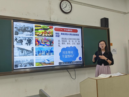 在活动中,杨艳萍老师作为本次的主讲人,对“概论”课第十章第四节的“在发展中保障和改善民生”进行讲课和说课。随后由教研组全体老师针对本堂课的优点和不足展开讨论、交流。活动过程中老师们畅所欲言,各抒己见,把自己的想法、经验、困惑等在教学中碰到的问题都提出来,进行共同的探讨。