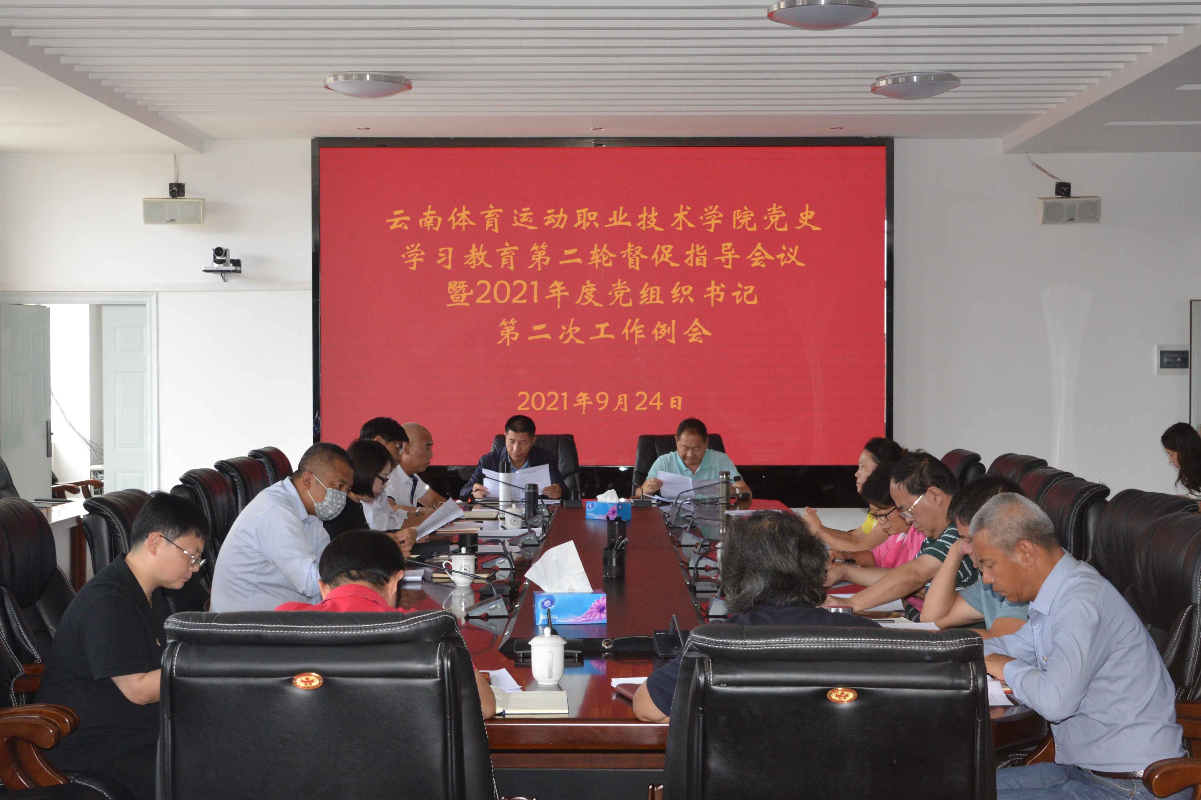 9月24日下午,学校在云帆楼四楼第一会议室召开党史学习教育第二轮督促指导会议暨2021年度党组织书记第二次工作例会,学校党委领导班子全体成员,各党总支部书记、副书记、专职副书记、组织员,直属党支部书记、副书记,师、生党支部书记,相关职能部门负责人参加了此次会议。会议由副院长董从民主持。