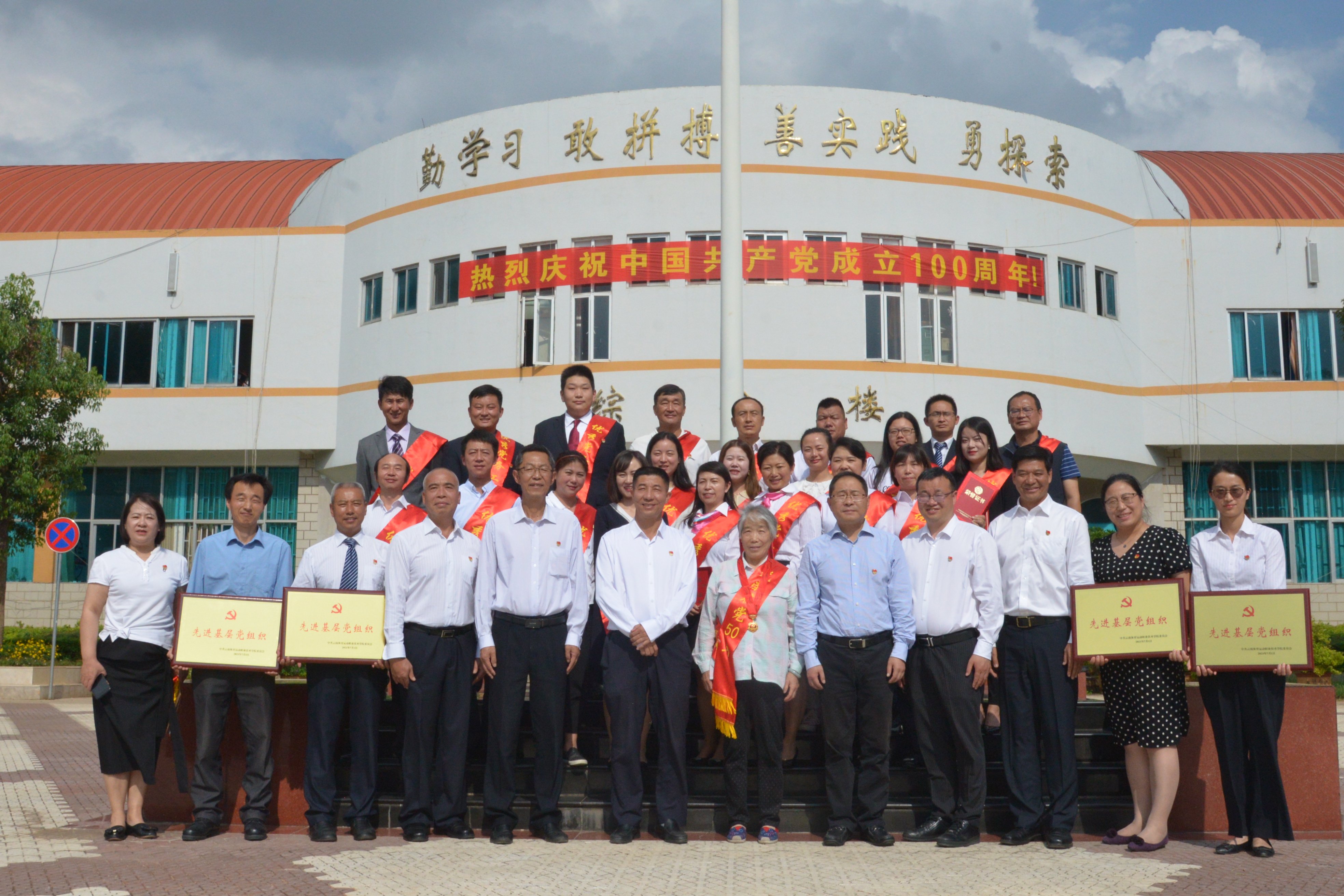 会上,党委副书记、院长代红兵宣读了“两优一先”表彰决定。党委领导班子成员依次为“光荣在党50年”纪念章获得者、云南省脱贫攻坚先进个人、优秀共产党员、优秀党务工作者、先进基层党组织等24人和4个支部颁发证书奖牌。