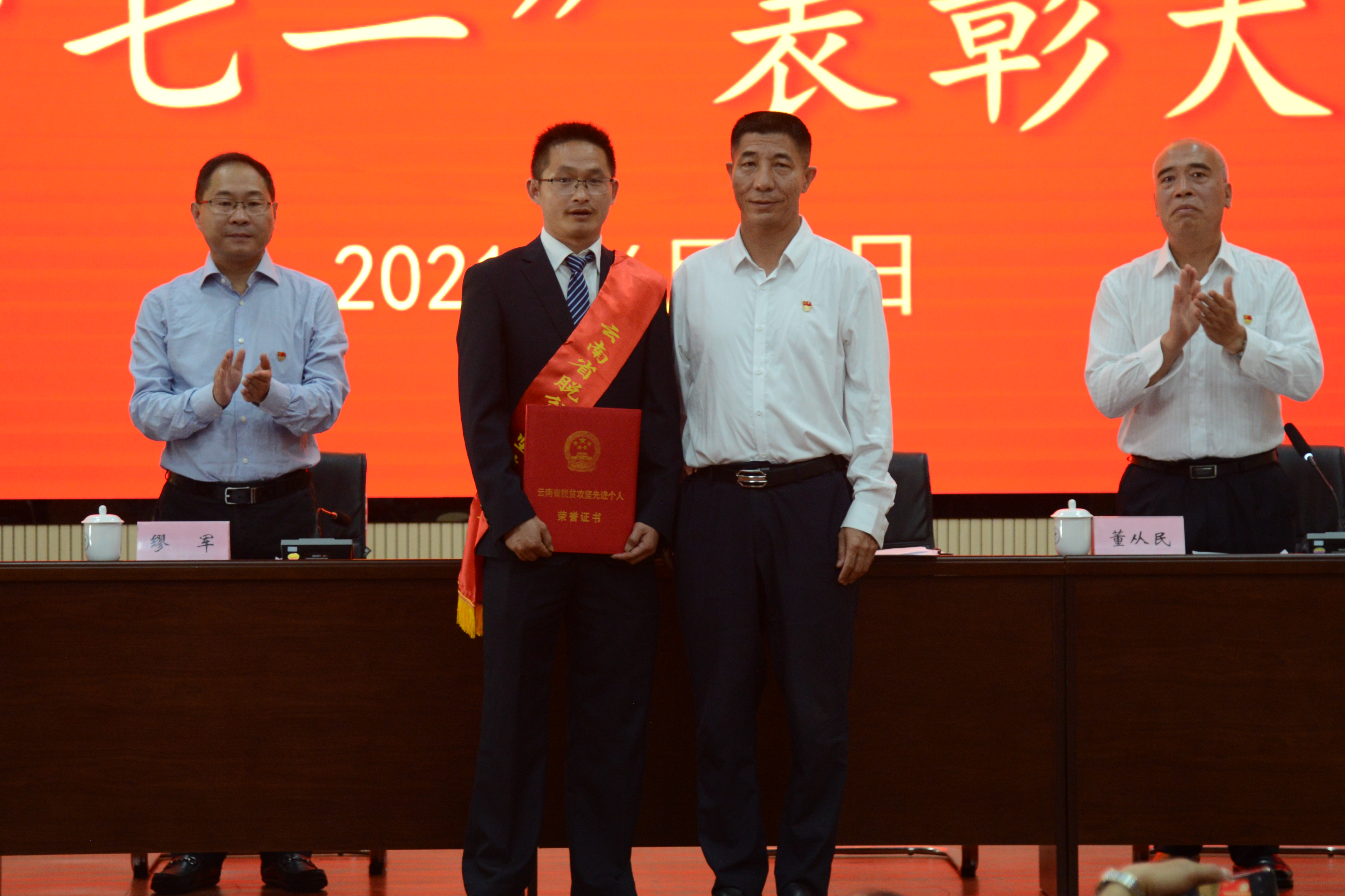 (党委副书记、院长代红兵为云南省脱贫攻坚先进个人叶超颁发荣誉证书)