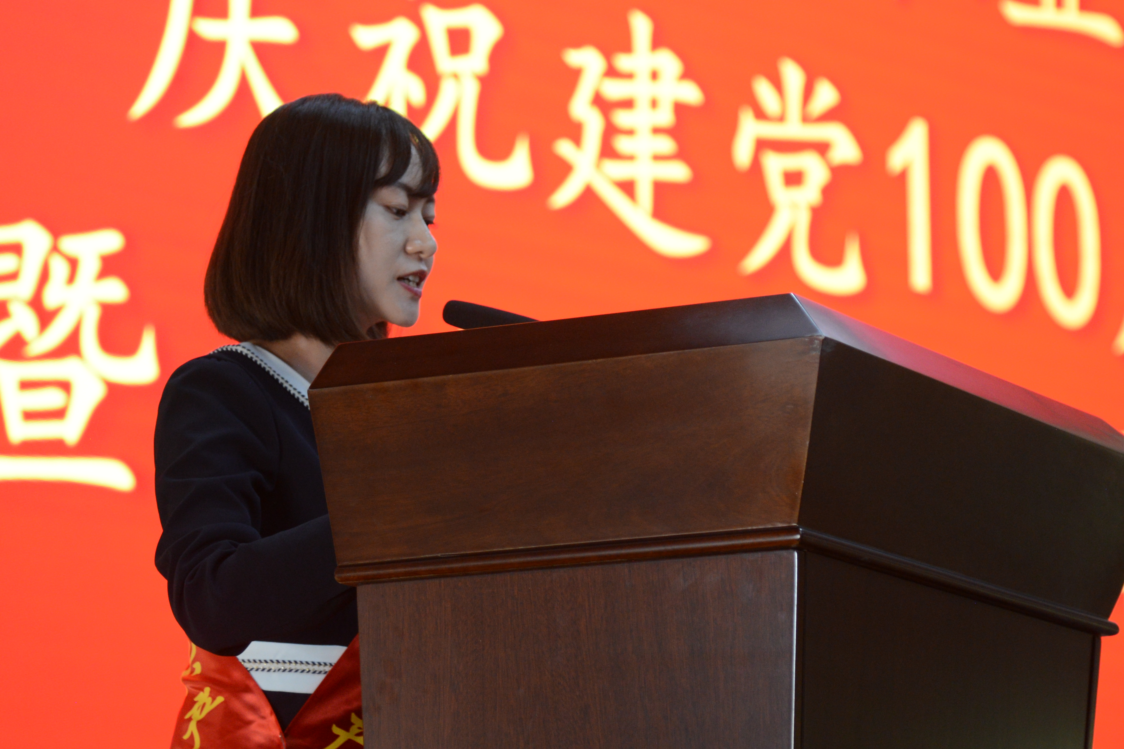 体育传媒与艺术学院教师周子琦代表优秀共产党员发言。她表示,学校对“两优一先”进行隆重表彰,既是对教师工作的充分肯定,也体现了学校党委对广大共产党员的无比关爱。作为优秀共产党员,大家也将不忘初心,牢记使命,以党和人民的事业为重,永远保持共产党员的先进性,以实际行动证明自己无愧于优秀共产党员的光荣称号。